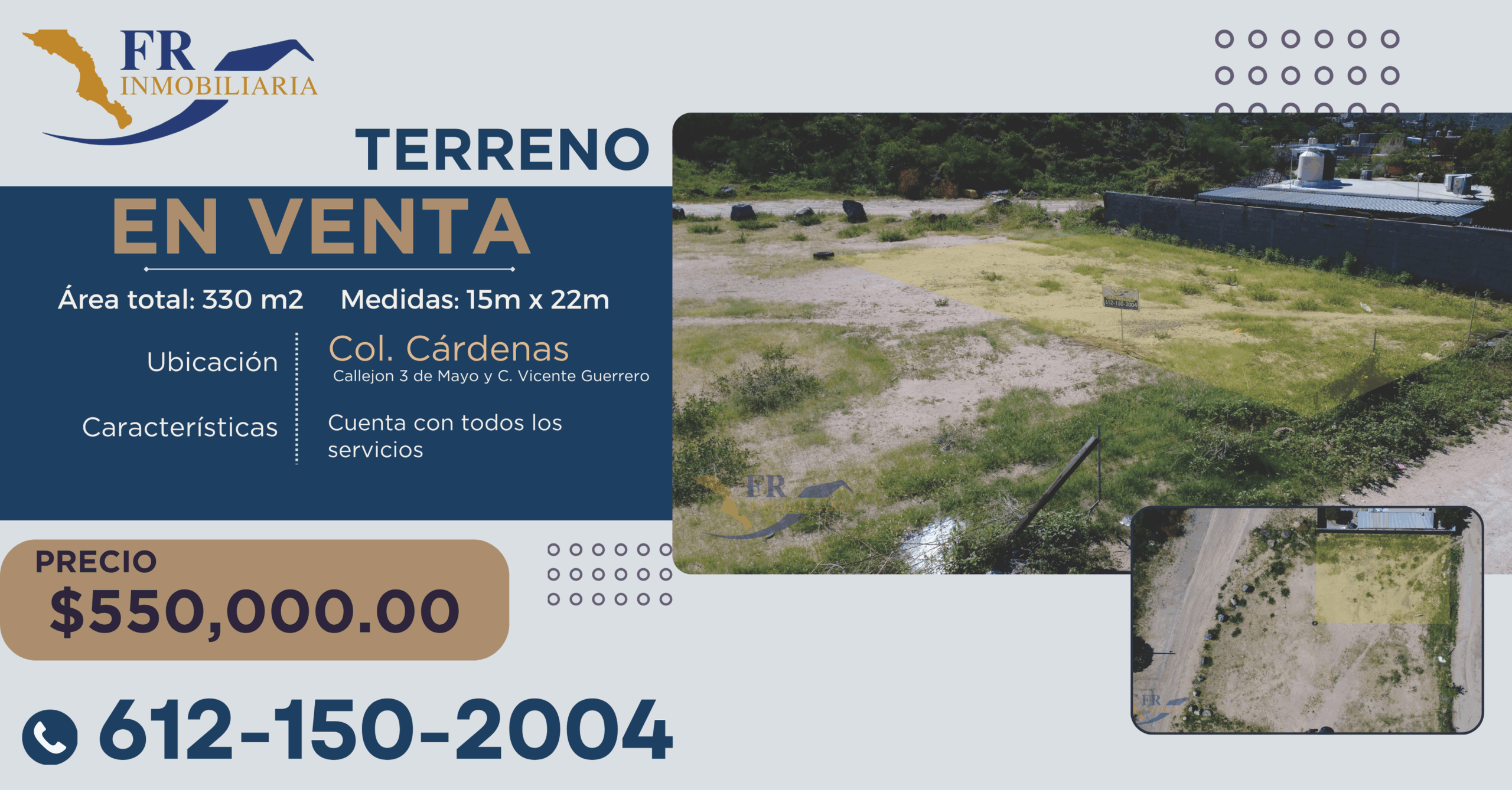 Terreno en VENTA Con un área total de 330 m2 Medidas 15m x 22m